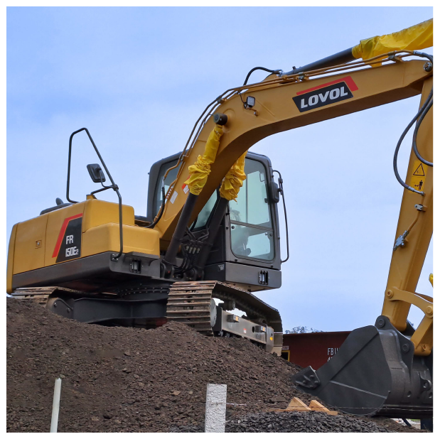Máquina autopropulsada, sobre neumáticos u orugas, con una estructura capaz de girar al menos 360° (en un sentido y en otro, y de forma ininterrumpida) que excava terrenos, o carga, eleva, gira y descarga material por la acción de la cuchara, fijada a un conjunto formado por pluma y brazo o balancín, sin que la estructura portante o chasis se desplace.